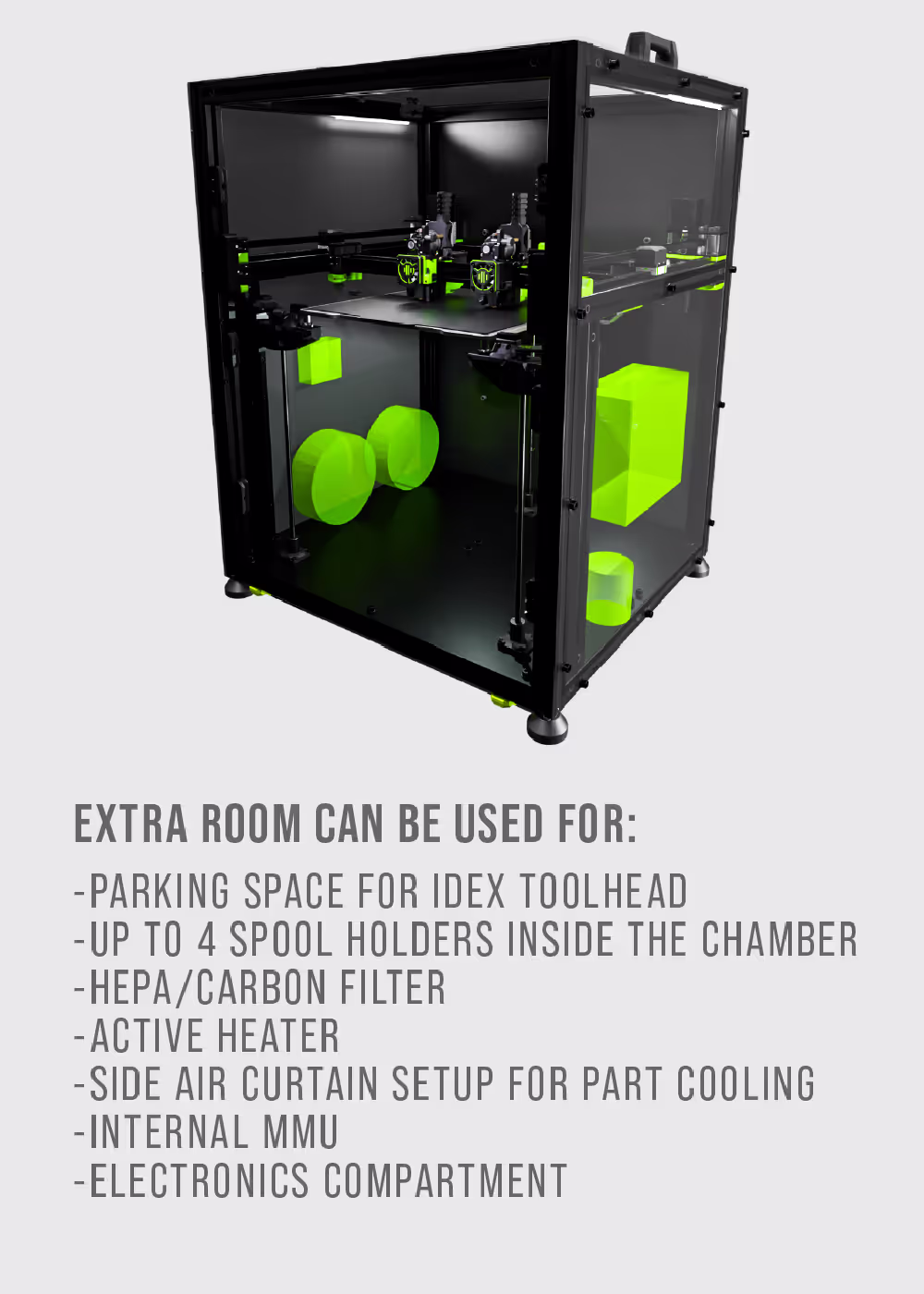 Easily upgrade standard into Hybrid and then Hybrid into IDEX - Conversion between modes is just a matter of adding a few parts, no rebuild is necessary.